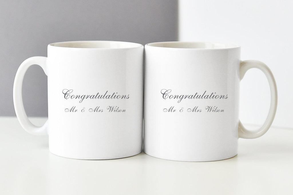 Each set of mugs are printed to order and they can even be personalised with the couples names on the reverse.